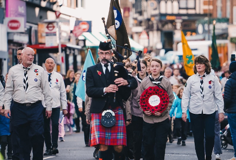 Bromley Scouts help Beckenham come together to honour the fallen at Remembrance Parade and Service.